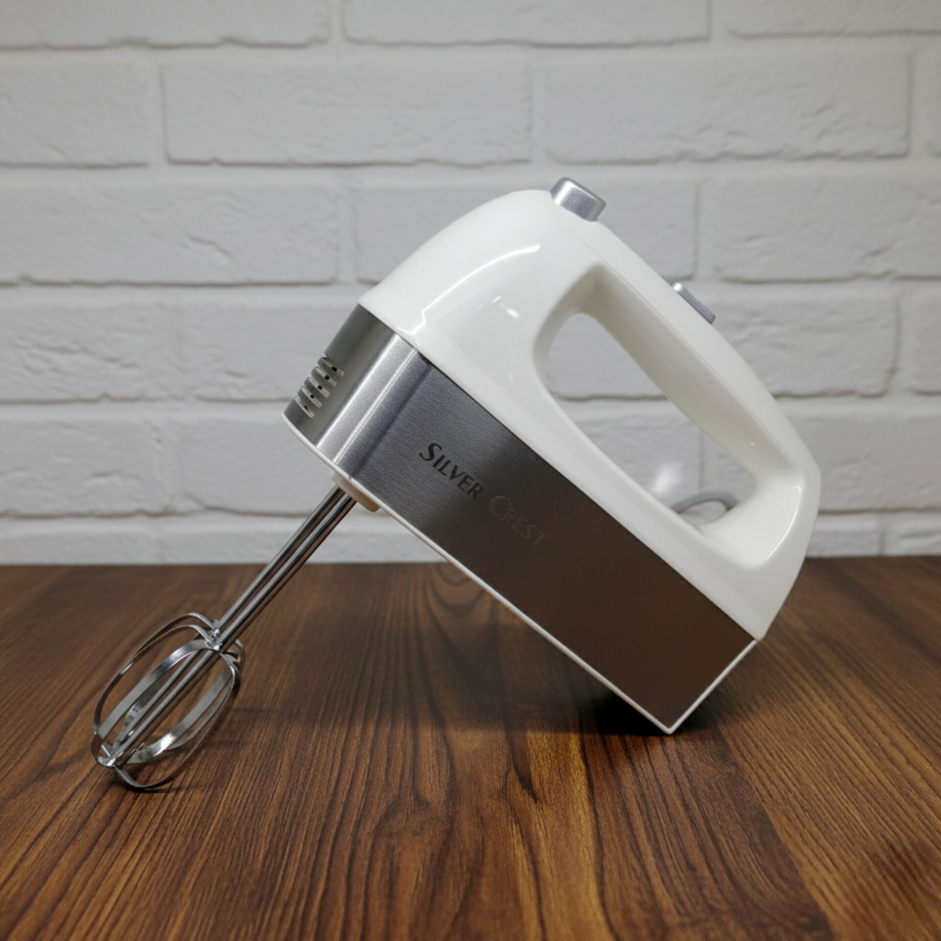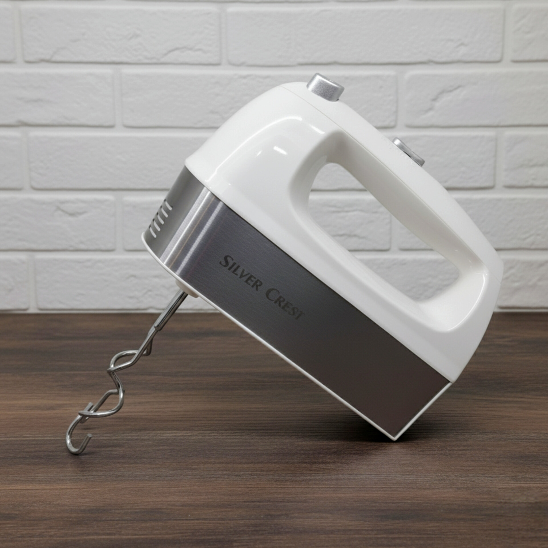 همزن دستی برند سیلورکرست 1200 وات توان دارای 2 سری همزن و 2 سری خمیرزن رنگ بدنه سفید استیل